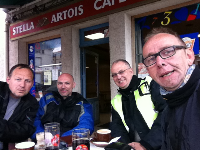 Nadat bleek dat de voorziene aanhangwagen toch niet geschikt was om de motoren veilig te vervoeren zat er voor onze 4 motards niets anders op dan wat poepzalf te kopen en de 1200km naar Perpignan met zijn 4en op de motor te rijden.