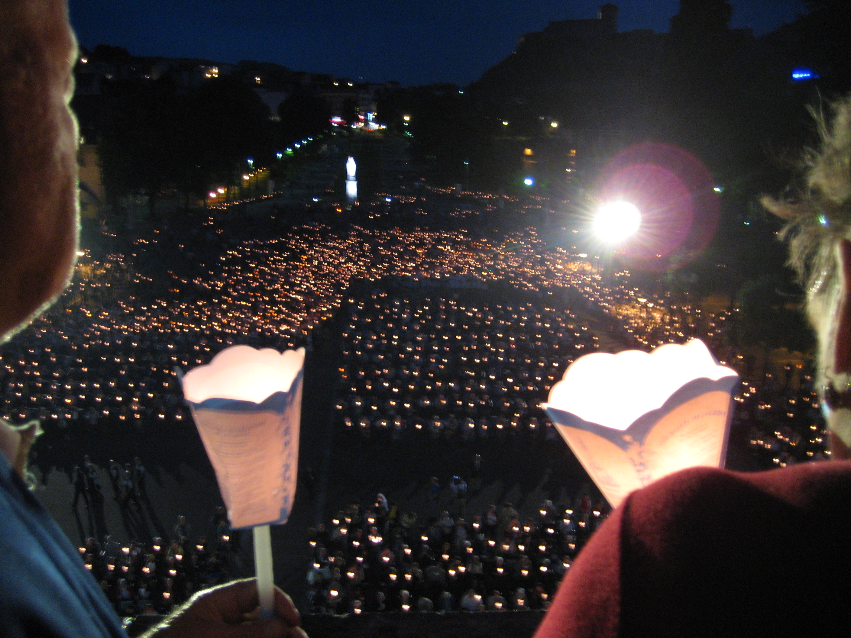Gisterenavond toch wat paniek. Er waren twee rugzakjes blijven staan op de Tourmalet, van onze onvermoeibare Jan en Rudi. Motard Michael was nog volle gas terg gereden, maar geen zakjes, gsm’s of kredietkaarten te zien. Er werden tientallen boegies opgestoken tijdens de kaarskesprocessie in Lourdes en meerdere glazen gedronken op de goede afloop in Bar Vertigo. En het hielp: rugzakjes en waardepapieren terecht. Tweede filmpoging van Hollander Chris op de Tourmalet wel jammerlijk en letterlijk de mist in. In Lourdes zelf bewolkt terwijl heel wat coureurs het Ave Maria meezingen voor de Grottes en de kathedraal. Toch indrukwekkend hoeveel mensen hier naar toe trekken. Ook hoeveel wansmakelijke commercie er omheen. Ook daar word je letterlijk ziek van.