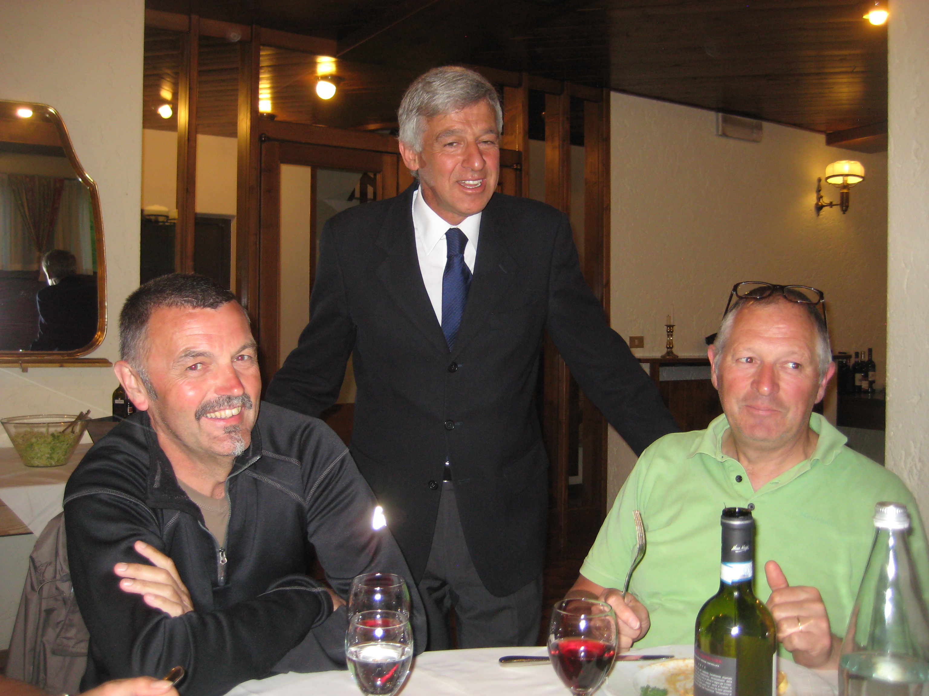 Aan tafel werden we bediend door de eigenaar van het hotel Mr. Anzi, een top professional ski trainer op rust die uitpakte met het vervlogen trainerschap van de Belgische ski ploeg en ski kampioen Girrardelli. Zijn beminnelijke dochter, een rasecht Italiaantje volgens de Leo, was al even behulpzaam en heeft de Italiaanse chef van Il Gatto Nero in Como op zijn Italiaans overtuigd om zondag aanstaande onze reservatie te accepteren.