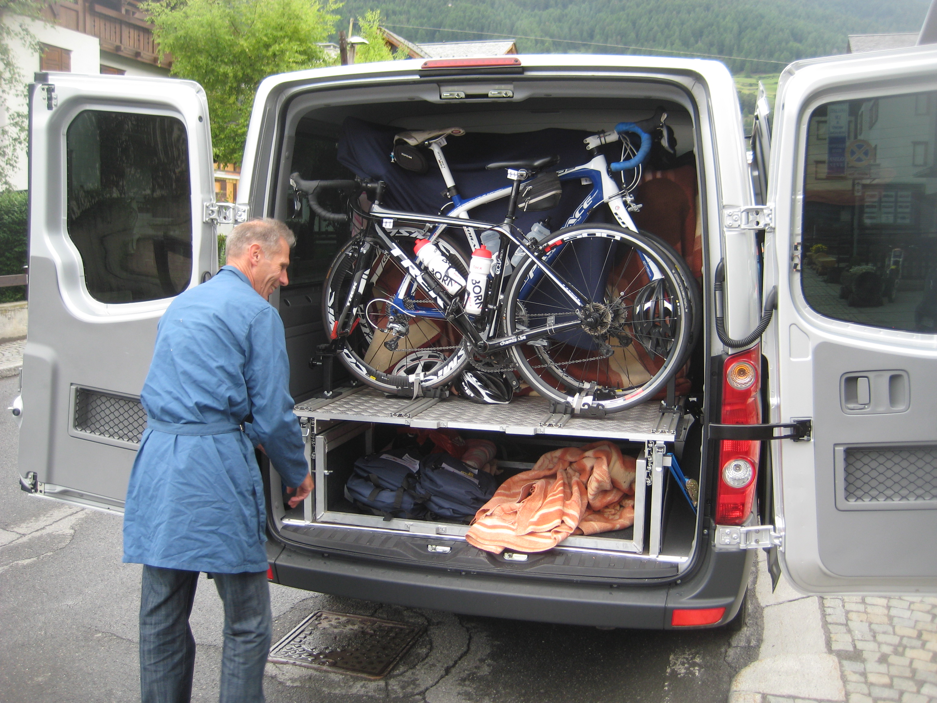 Dan een minder bericht van Michel, onze motard. Hij is gestrand in Imst met een kapotte remschoen. Wiel geblokkeerd en onherstelbaar. Vervangstukken kunnen ten vroegste woensdag in Imst toekomen. Niet goed dus. Plan B was snel gemaakt. Leo en Jef rijden morgen naar Imst en halen Michel op. De moto wordt naar Belgie gerepatrieerd en Michel kan alsnog de rit meemaken vanuit de volgwagen. Eind goed, al goed. Iedereen veilig in Bormio.IMG_7710