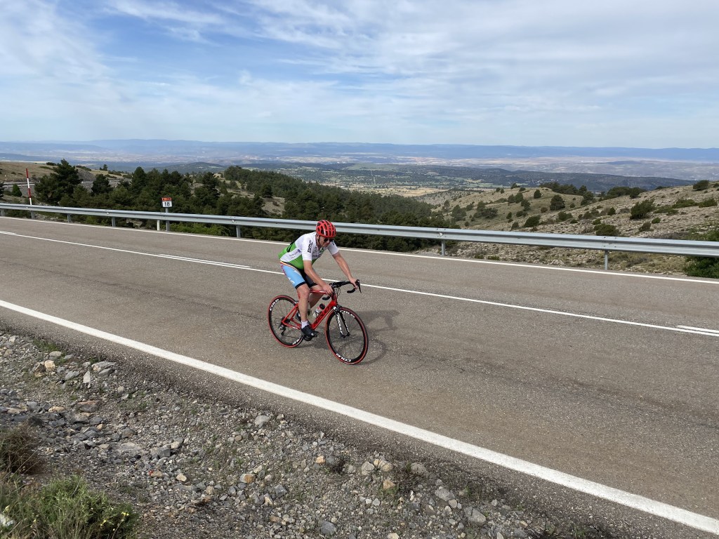 De klimmetjes volgen zich nu snel op met telkens zo’n 80 hoogtemeters, tot we een kilometerslange hobbelige weg mét tegenwind volgen. Gelukkig zet Kim mijn roomie Frederic en ik helemaal uit de wind. Een dagje Zoetemelk, lacht die andere Luc. Nonkel Leo heeft alweer een schitterend restootje gevonden voordat we de tweede terp op klefferen. Naar de Puerto de Majalinos op 1450 hoogtemeters. Frank springt opnieuw z’n koerspaard op. Nu moet ik Hans toch wel te grazen nemen. Op zo’n 200 hoogtemeters voor de top kom ik voetje voor voetje dichterbij, maar de sloeber hoort mij komen en heeft toch nog wel een cartouche zeker! Op een kuthaar na had ik hem. Boven, op de rand van de provincie Andorra liggen de fietsen alom op de grond alsof iedereen er de brui aan wil geven. Quid non. Michel eerste, gevolgd door Jo die zich niet meer liet verschalken. Koen is derde, net voor Mark. Familieliefde is: je pa laten winnen op de eerste berg en je zoon laten winnen op de tweede.