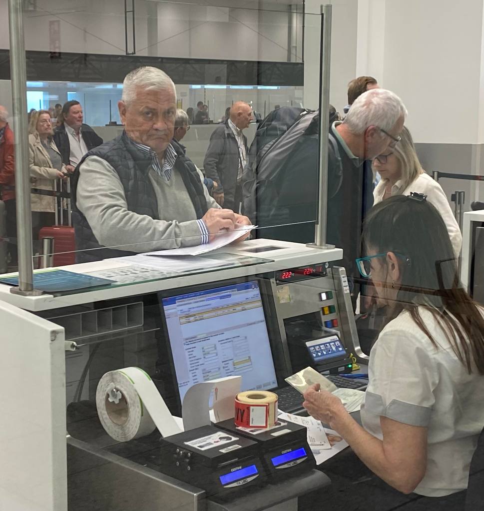 Behoudens een kleine discussie van Kim over het overgewicht van zijn zware reistas vol met gellekes en poeier verloopt de checkin vlekkeloos. Behalve voor Guy die door de Aer Lingus dame aan de checkin balie, ze had nog een slaapkop opstaan, op een andere vlucht vanuit Dublin wordt gezet. Na enkele telefoontjes is iedereen ingecheckt. Oef….! De eerste horde is genomen.