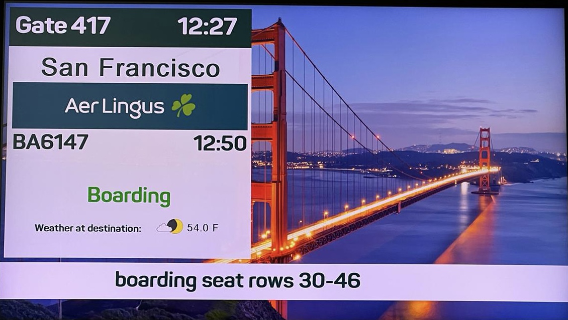 We arriveren met 20’ vertraging in Dublin en we hadden al een “short connection”, we moeten dus voort maken om onze vlucht naar San Francisco te halen. Het voordeel van via Dublin te gaan is dat je daar al de Amerikaanse douane pre-clearance kan/moet ondergaan. Het nadeel is dat dit tijd kost. Rudi loopt op kop (een voorbode van de koptrekker in de eerste ritten…?) maar wordt er uitgepikt voor een extra security check (ook een voorbode van wat gaat komen…?).