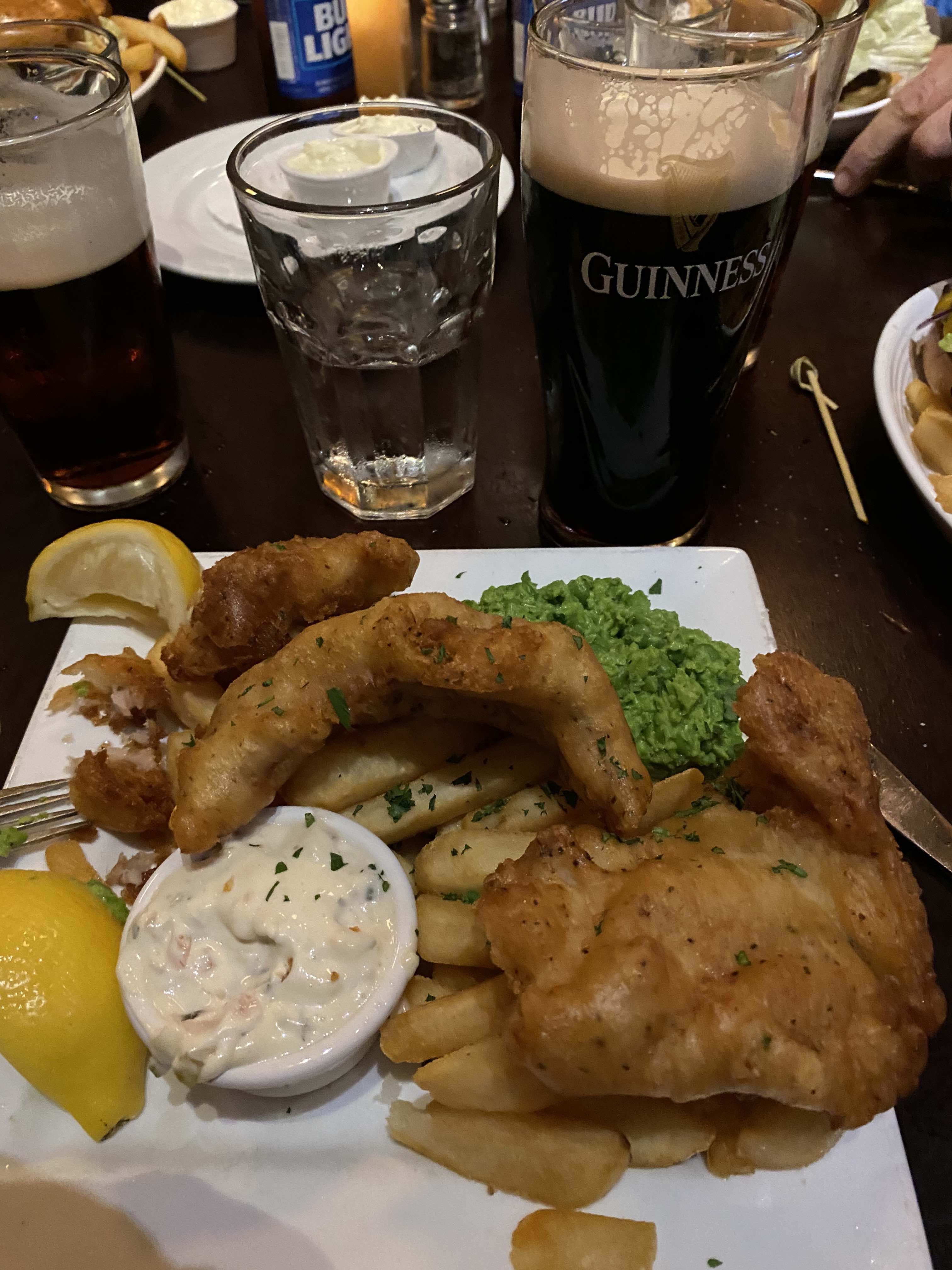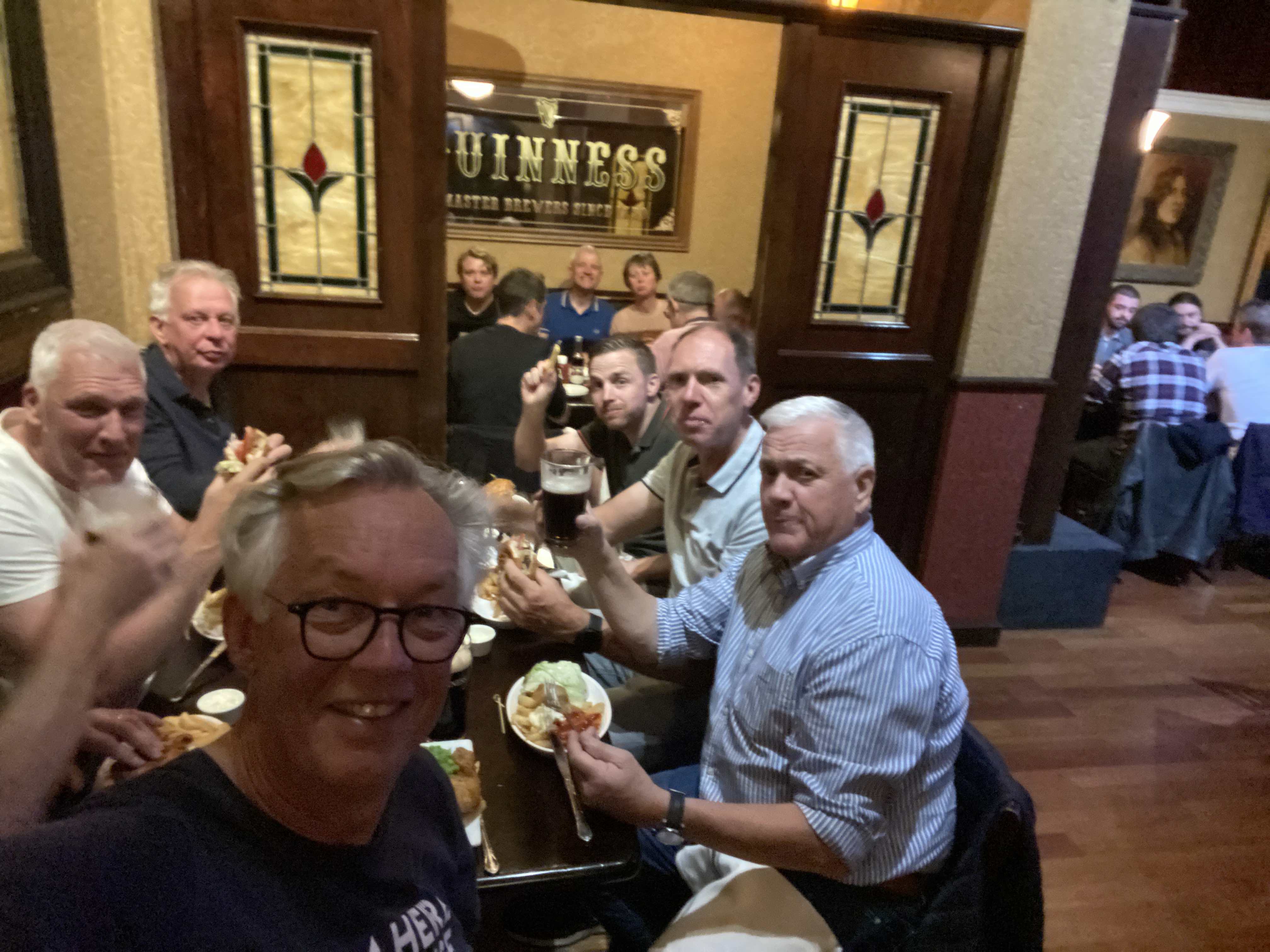 De Buena Vista Club die als diner-restaurant op de planning stond, bleek volgens Hans al wat van haar pluimen verloren te hebben. ´Ik weet nog een goed Irish eet-house´ riep Willy, en wijle weg. Enkelen lieten de Guinness van´t vat smaken en ja,  naast fish-and-chips kwamen natuurlijk de onvermijdelijke hamburgers op tafel. Er zullen er nog volgen, vrees ik.