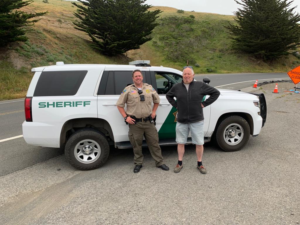 Een ander probleem in deze woeste natuur is dat er nergens gsm verbinding is. Ook de Sheriff heeft geen bereik. Die kon via zijn radio wel de brandweer bereiken. Ondertussen rijden wij verder op zoek naar een dorpje met gsm verbinding. Dat vonden we in Tomales, waar buiten de Saloon en een grocery store geen leven te bespeuren was. Met hulp van onze reisagent Rudy Mees kreeg ik het Road Side Assistence nr. van Budget te pakken, waar ik na he doorlopen van talloze toets menu’s in de wachtrij werd geplaatst. Gelukkig kwam snel nadien het verlossende bericht: de brandweer de auto heeft open gebroken. We zijn weer op weg.