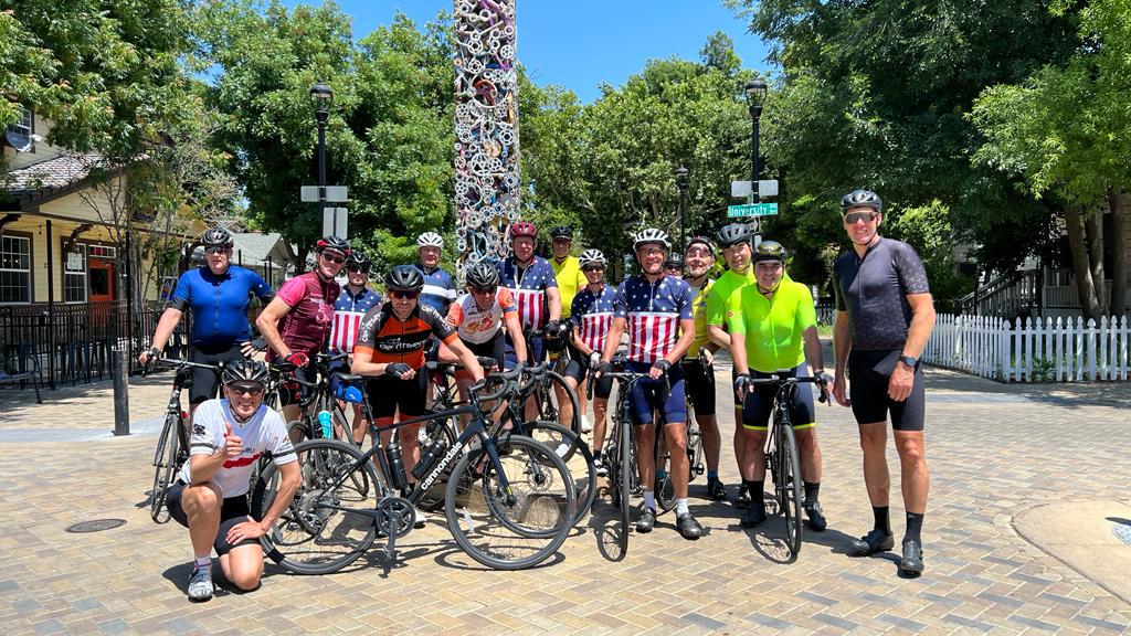 Enkele km na de lunch rijden we door Davis, “de” fietsstad van California zo blijkt. Het monument The Needle is opgebouwd uit honderden kamwielen en is hiervan het symbool. Een groepsfoto kan niet ontbreken.