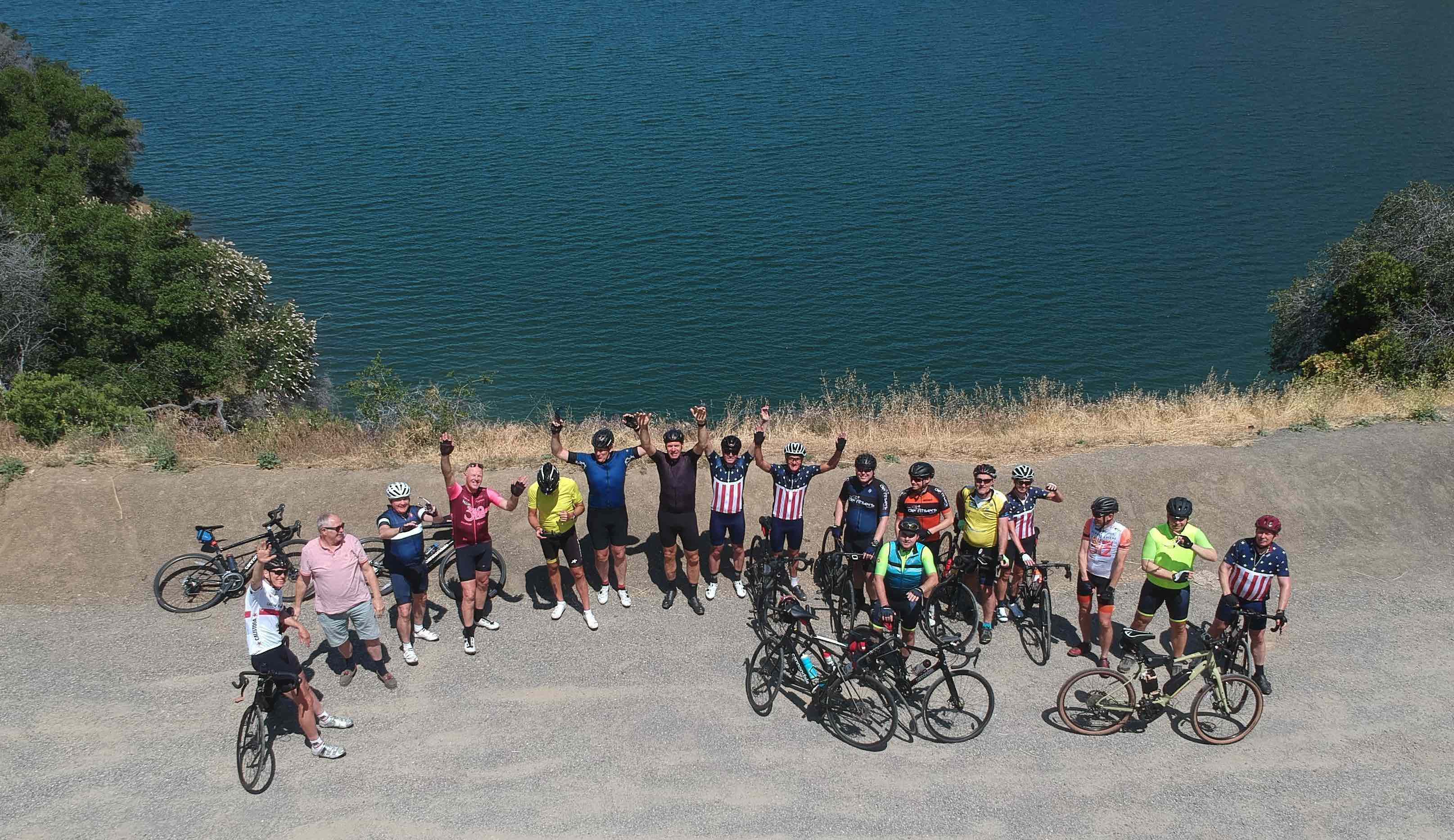 Na Davis zijn de wegen ooit getekend met een rechte lat. We rijden door een flooding area die enkele weken geleden nog helemaal was ondergelopen door de smeltende sneeuw in de Sierra Nevada. Een rechte baan van 13km en wind in de rug… dat nodigt uit tot vlammen! Kris zet zich naast Kenny en nu rijden er 2 beren op kop. Het gaat van 33 km/h naar 36 naar 43 en dan roept iemand “50 is haalbaar”. Dat halen we net niet, maar iedereen rijdt met kop-in-kas en 100% gefocusseerd op het wiel van zijn voorganger. Niemand wil lossen, behalve Didier. Die moet het opgeven. Op het einde is er een bocht van 90 graden en weer 15km rechtdoor. Nu is het waaieren geblazen met een strakke wind rechts in de flank. Wanneer Kris versneld op een licht oplopend bruggetje roept Maritza hem tot de orde. Het helpt maar even. Bij de laatste drankstop besluit Christophe zich toch maar wat te ontfermen over zijn buddy Didier want nu is ook de batterij van zijn gsm bijna leeg.
