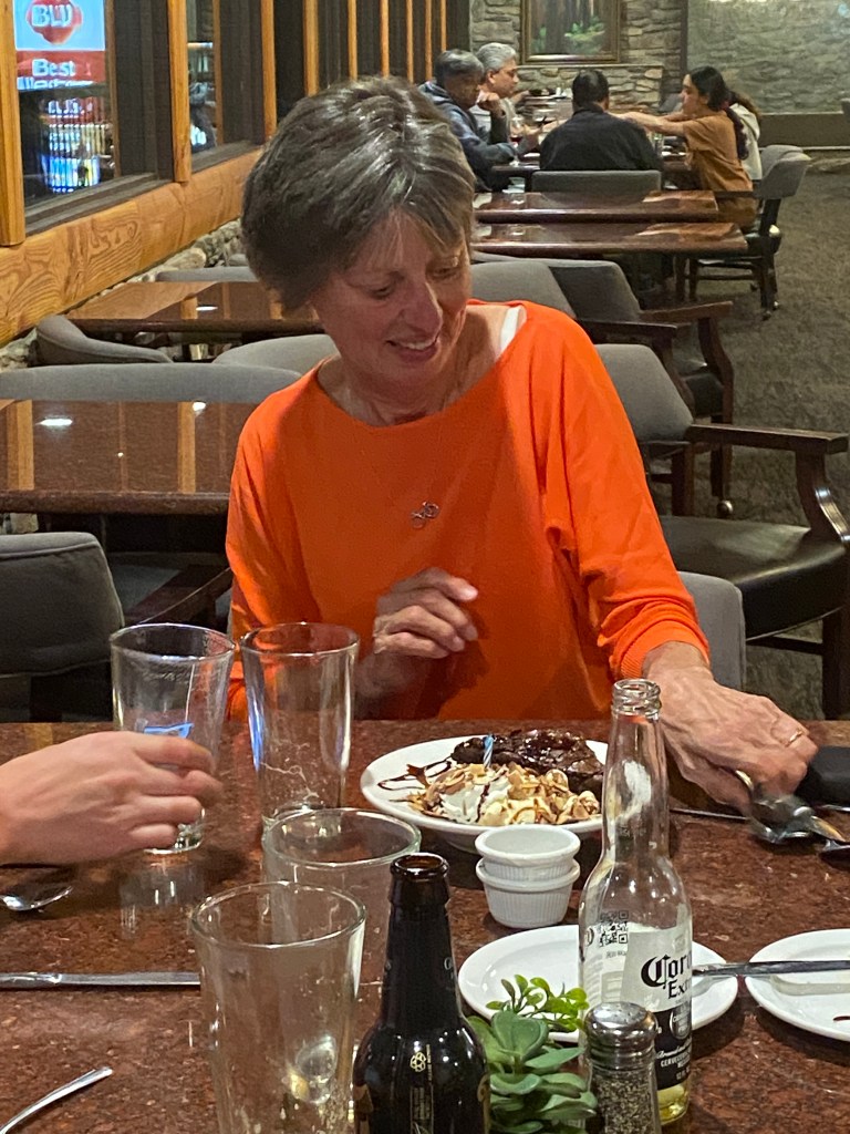 We zijn laat in het hotel en eten vinden wordt de uitdaging. De Oakhurst Grill naast de deur wil ons bedienen, maar we moeten een uurtje wachten. Na wat aandringen kon het toch sneller. De zalm, fish & chips en de ribeye steak zijn van de beste die we al hebben gegeten deze week. Ook Willie, die een uur te laat komt klijgt mog een bord. We organiseren nog een happy-birthday-dessert voor Maritza en zingen samen een hip-hip-hoera.