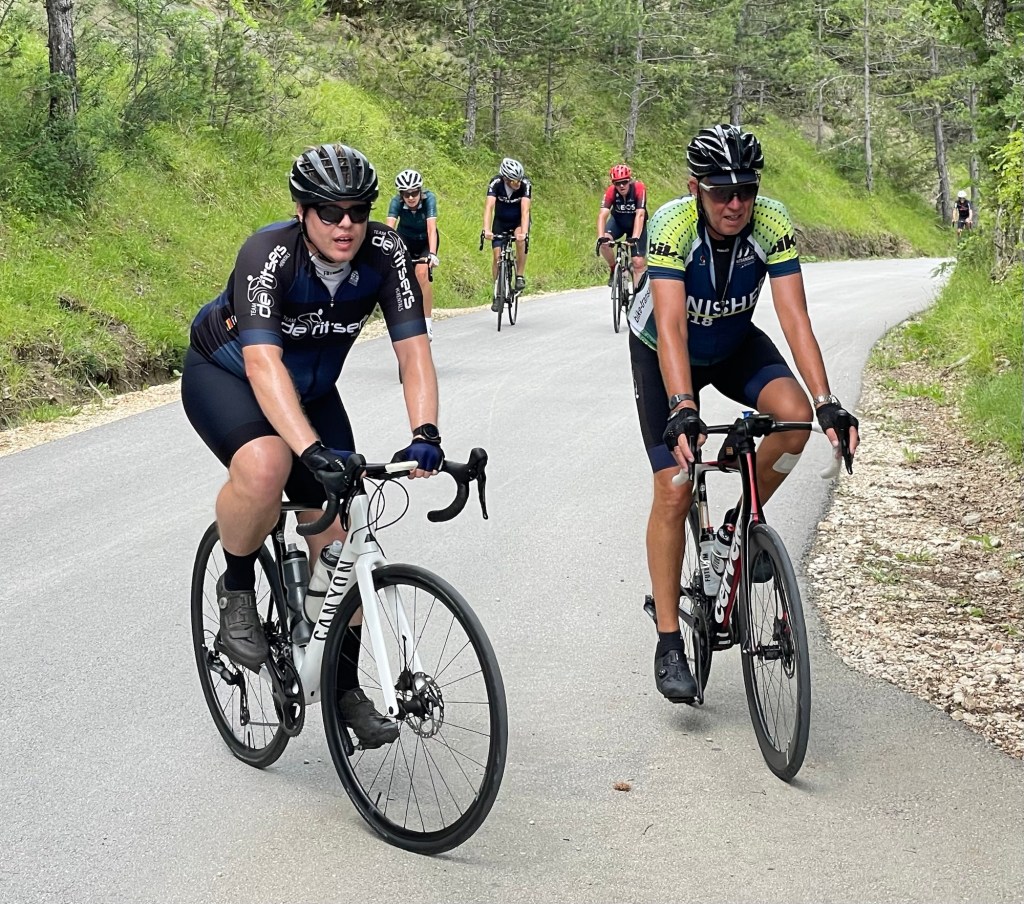 Een handvol Ritsers waagt zich nog aan de laatste kloeffer van de Ucka, de tweede zwaarste berg van Kroatië. Chapeau! Daarna bergaf tot in Rijeka.