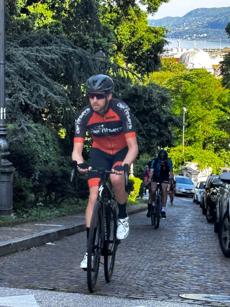 Amper vertrokken, net voor een zeer pittig neepje naar de piazza cathedrale in Trieste, trekt Luc Sandaal z’n derailleur in de prak.