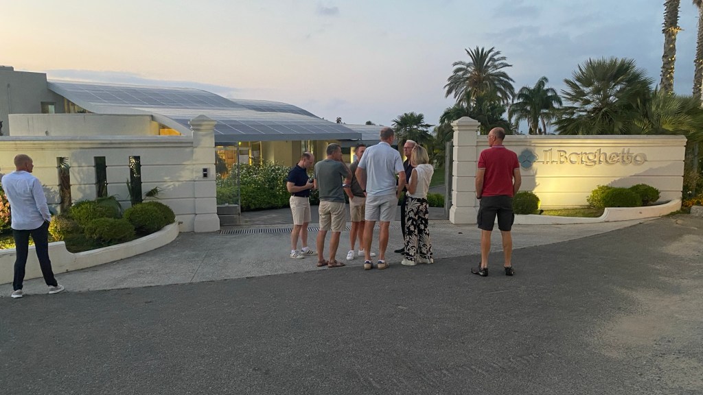 Het wordt dus 50 euro per rit, voor 2km… Eerste bus weg:Christophe en Hans H. worden naar restaurant Romana geleid, niet toevallig het restaurant van het hotel. Daar wordt gezegd dat de reservatie toegekomen is. Quod non. Wij hebben in een ander resto Incipit gereserveerd. Nice try. Christophe was not amused. Die had honger. Incipit daarentegen was een uitstekend resto, mooi geleden, goede bediening. We willen dezelfde dure taxi terugnemen, staat er eerst iemand anders die ons voor 25 euro wil brengen naar ons hotel… Hans schiet in een furieuze bui als die andere, best onvriendelijke taxichauffeur langs komt die het aan 50 euro doet: ‘ You fucked us!’. (x10). Uiteindeljk trekt de helft weg met de taxi aan 25 euro. Kim betaalt de andere snoodaard 130 euro. ‘Schurken’, schrijft Hans op Facebook.